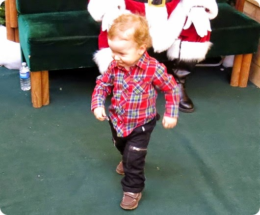 It was such a fun morning with Mason at the mall visiting Santa that I don’t think I can really come up with the words to describe it. So, I’ll just let the pictures I took do all the talking for me along with a little added color commentary from our little man:
